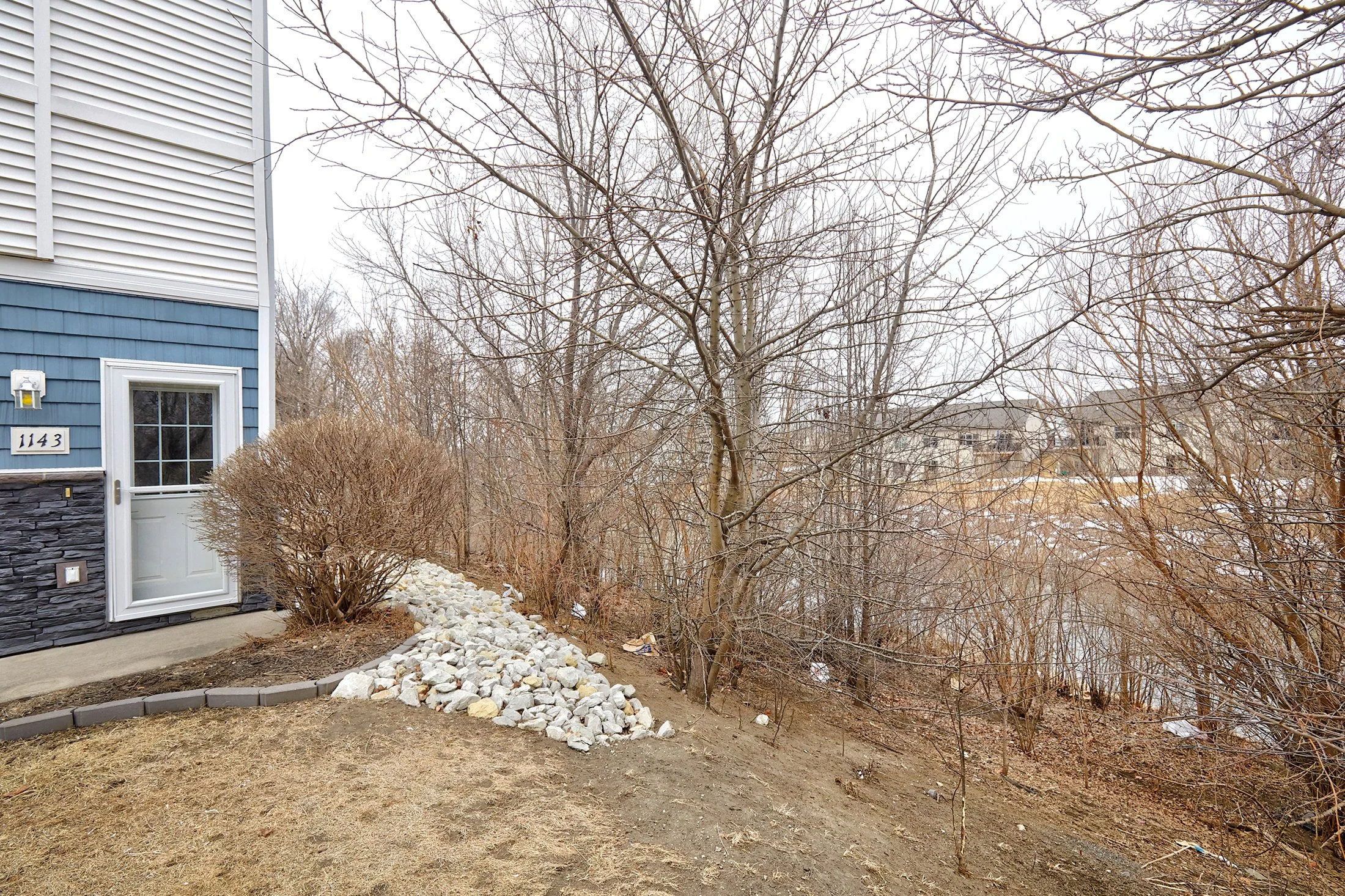 Green space with mature trees located next to the home